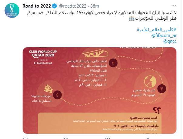 وأضافت "لا تنسوا اتباع الخطوات المذكورة لإجراء فحص كوفيد-19 واستلام التذاكر في مركز قطر الوطني للمؤتمرات"