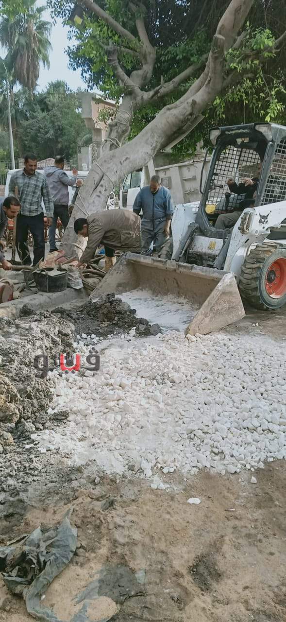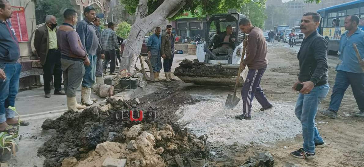 المعنية بحي جنوب الجيزة بإشراف تيسير عبد الفتاح رئيس الحي 3 مواسير مياه ناصية شارع المحطة والثانية قبل مدخل أم المصريين وبعد الانتهاء من الأعمال بالتنسيق مع شركة المياه وإدارة المرافق بالحي وصيانة الطرق.