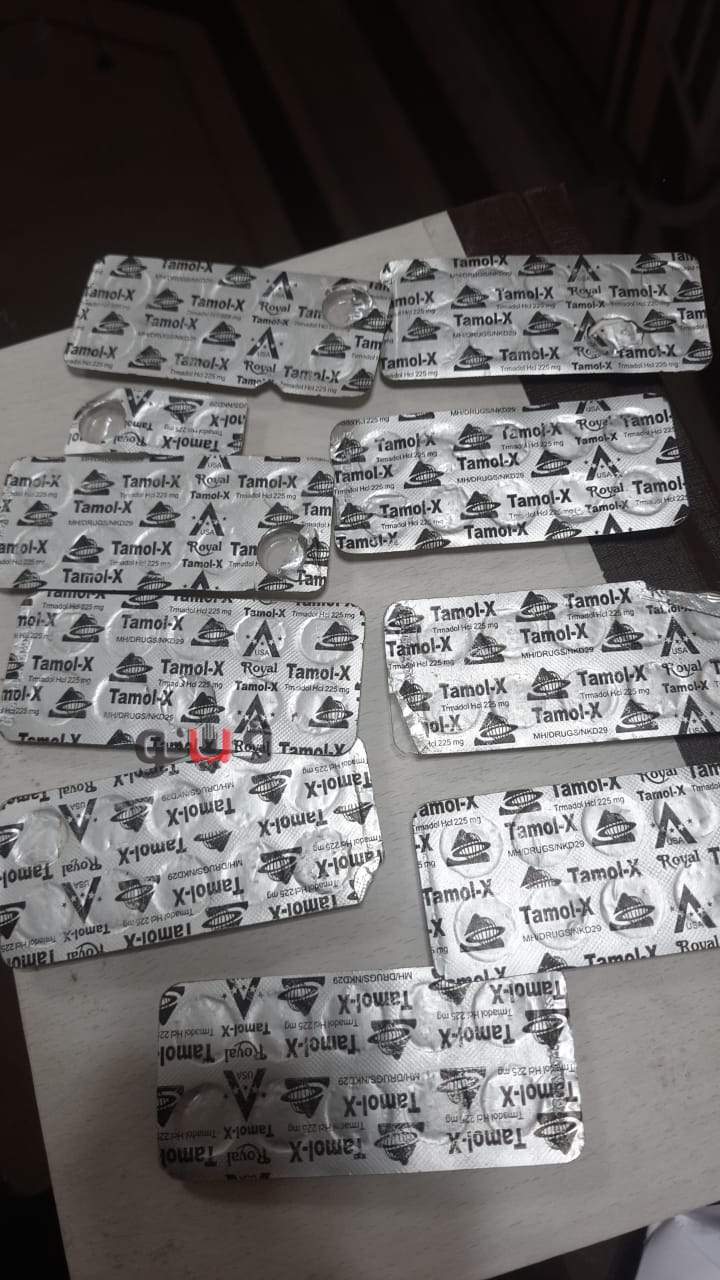 واسفر التفتيش عن ضبط 90 قرص ادوية مخدرة ( ترامادول) تركيزات مختلفة وهو صنف مهرب وغير مسجل بوزارة الصحة المصرية بالاضافة لكونه ادوية مخدرة مخالفة للقسم الثاني من الجدول 1 الملحق بقانون مكافحة المخدرات.