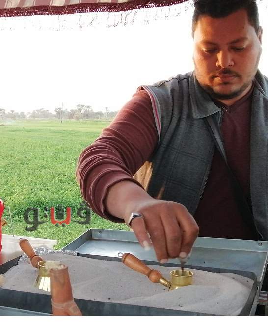 وعن استخدامات وأنواع الرمال، قال مصطفى: إنني استخدم في صناعة القهوة الرمل الحراري، وكنت اضطر إلى شرائه من القاهرة بالجوال وأتكفل بشحنه، وكانت البداية طبعا صعبة ولكن بعد الممارسة تبدل الحال.