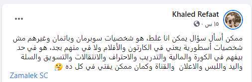 وكان خالد رفعت مدير التعاقدات والتسويق بالنادي قد شن حرب شرسة بالأمس من خلال بوستات وتويتات على فيس بوك وتويتر وهو ما ساهم في وجود حملة شرسة ضد إبراهيم عبد الله عضو اللجنة التنفيذية بالنادي وهو الأمر الذي أغضب أعضاء مجلس الزمالك بسبب طرح مثل هذه الأمور على مواقع التواصل الاجتماعي وليس في الغرف المغلقة.