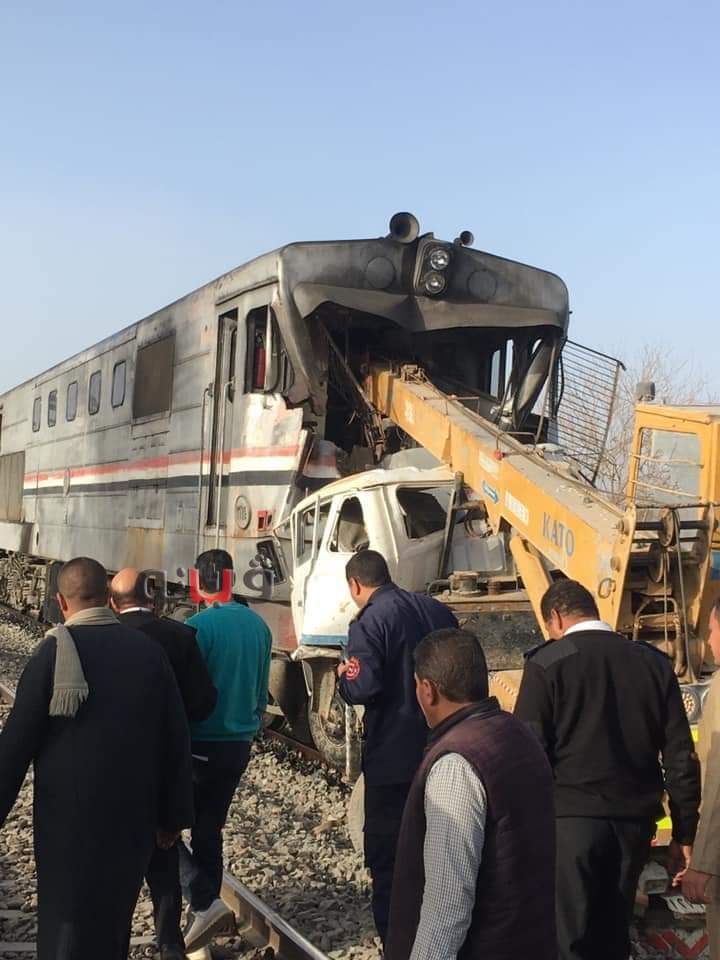 ويظهر الفيديو المتداول اللحظات الأولى لاصطدام وجه القطار بالسيارة النقل التي تحمل الونش أثناء توقفها بشكل مخالف في إحدى حارات المزلقان مع توقف قطار آخر في حارة الجهة المقابلة مما أدى إلى دخول رافعة الونش في نافذة القطار ومصرع جميع المتواجدين بكبينة قيادة جرار القطار وإصابة ٣ آخرين من المتواجدين بمحيط الحادث بينهم قائد السيارة الونش رغم محاولات العاملين بالسكة الحديد لفت انتباه قائد القطار والتبليغ بتواجد سيارة الونش في المزلقان وعدم التمكن من تحريكها لضيق الوقت قبل قدوم القطار السريع.