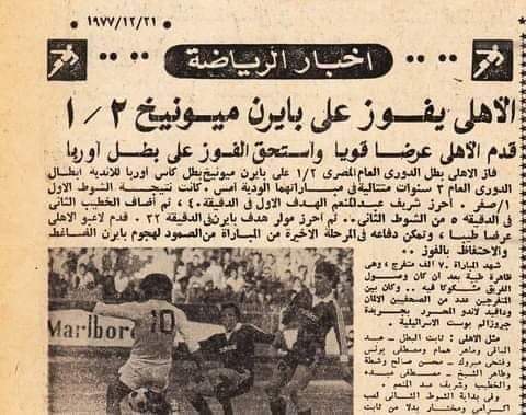 وتبقى ذكريات مواجهة الأهلي مع بايرن ميونخ خالدة حيث بدأت تلك المواجهات في العام ١٩٧٧ والتي انتهت بفوز الأهلي بهدفين لهدف احرزهم الكابتن محمود الخطيب والكابتن شريف عبد المنعم فضلا عن مواجهة البايرن عام ١٩٨٤ وانتهى اللقاء بفوز العملاق الألماني بهدفين نظيفين ومواجهة أخيرة جمعت الفريقين على ملعب الريان القديم وانتهت بفوز الفريق البافاري ٢-١ بشق الأنفس.