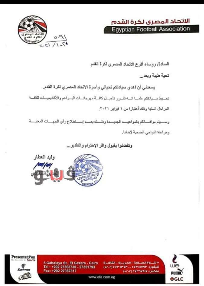 وأخطر اتحاد الكرة اليوم السبت، الفروع التابعة للجبلاية، بإمكانية استكمال مهرجانات البراعم بداية شهر مارس 2021.