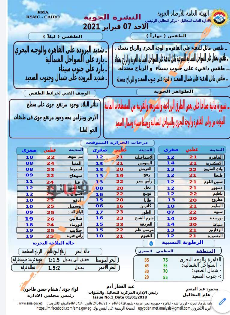 حالة الطقس ودرجات الحرارة غدا الأحد 7-2-2021 في مصر