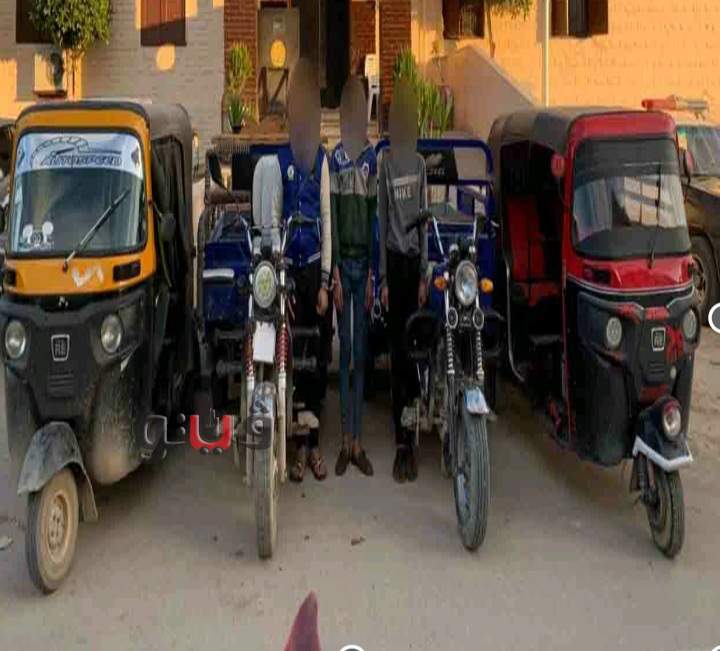 وبمواجهتهم اعترفوا بارتكاب 5 وقائع سرقة ، وبإرشادهم تم ضبط المسروقات عبارة عن (3 توك توك – 2 تروسكيل) .
