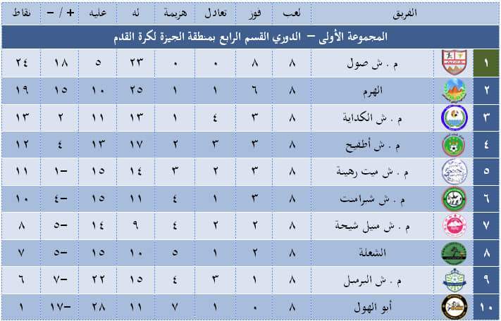 جدول ترتيب دوري القسم الرابع بالجيزة بعد الجولة الثامنة