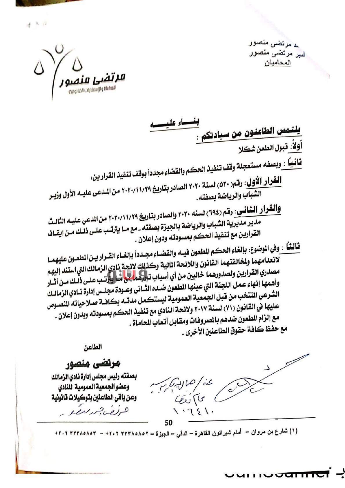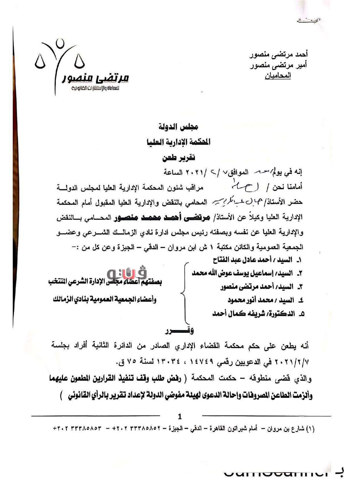 مرتضى منصور يطعن على حكم تأييد حل مجلس إدارة الزمالك | مستندات