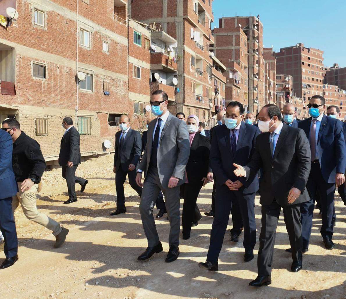 السيسي يصطحب مدبولي وأعضاء الحكومة في جولة تفقدية داخل منطقة عزبة الهجانة.. صور