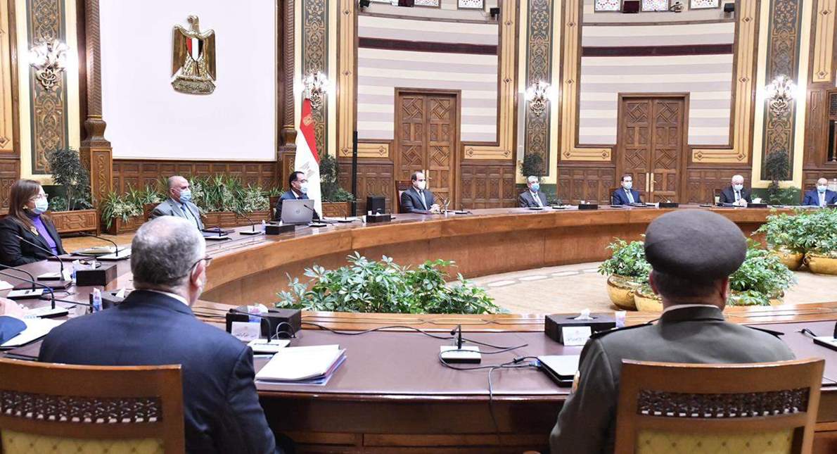 اجتمع الرئيس عبد الفتاح السيسي اليوم مع الدكتور مصطفى مدبولي رئيس مجلس الوزراء، والدكتور محمد شاكر وزير الكهرباء والطاقة المتجددة، والمهندس طارق الملا وزير البترول والثروة المعدنية، والدكتور محمد عبد العاطي وزير الموارد المائية والري، والدكتور طارق شوقي وزير التربية والتعليم والتعليم الفني، والدكتورة هالة السعيد وزيرة التخطيط والتنمية الاقتصادية، محمود شعراوي وزير التنمية المحلية، والدكتورة هالة زايد وزيرة الصحة والسكان، والدكتور عاصم الجزار وزير الإسكان والمرافق والمجتمعات العمرانية، ونيفين القباج وزيرة التضامن الاجتماعي، والسيد القصير وزير الزراعة واستصلاح الأراضي، والسيدة نيفين جامع وزيرة التجارة والصناعة، واللواء أمير سيد أحمد مستشار رئيس الجمهورية للتخطيط العمراني، واللواء محمد أمين مستشار رئيس الجمهورية للشئون المالية، واللواء أ.ح إيهاب الفار رئيس الهيئة الهندسية للقوات المسلحة".