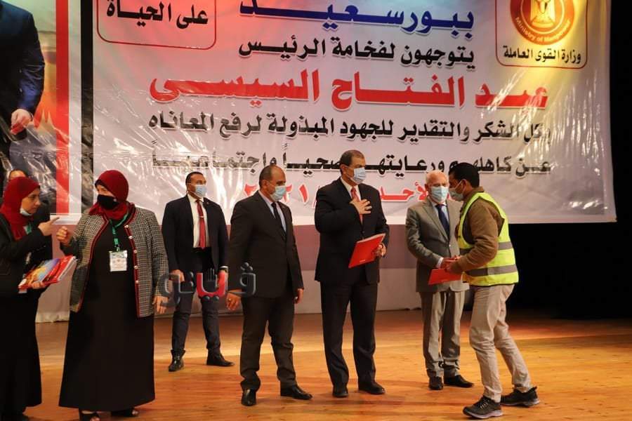 وقدم الوزير الشكر لمحافظة بورسعيد على الدعم الذي تقدمه الوزارة والمديرية لتسهل لها القيام بعملها لرعاية تلك الفئة، فى كل الخطوات التي تقوم بها، وامتد الشكر للعاملين بمديرية القوي العاملة ببورسعيد على ما يقومون به لخدمة العمالة غير المنتظمة، مطالبا منهم الاستمرار في العطاء أكثر وأكثر حتى يتم رعاية وحماية تلك الفئة من جميع الوجوه.