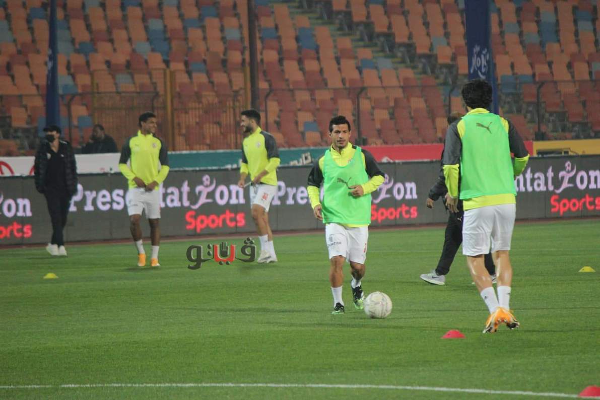 لاعبو الزمالك يجرون عمليات الإحماء قبل لقاء الاتحاد السكندري | صور