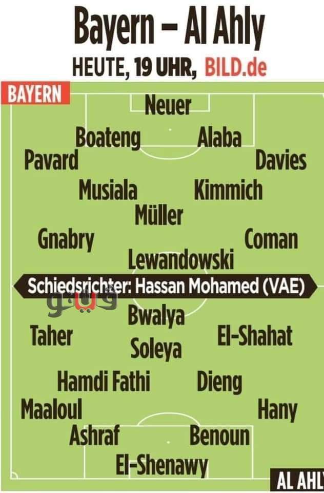 كشفت صحيفة بيلد الألمانية عن تشكيل الأهلي المتوقع لمباراة بايرن ميونخ المقرر إقامتها في الثامنة مساء بنصف نهائي كأس العالم للأندية.