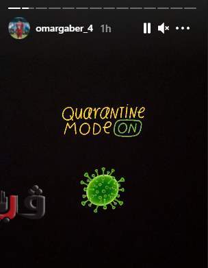 وقال عمر جابر، عبر ستورى حسابه على انستجرام: "فى الحجر الصحى"، مع إضافة شكل الفيروس.