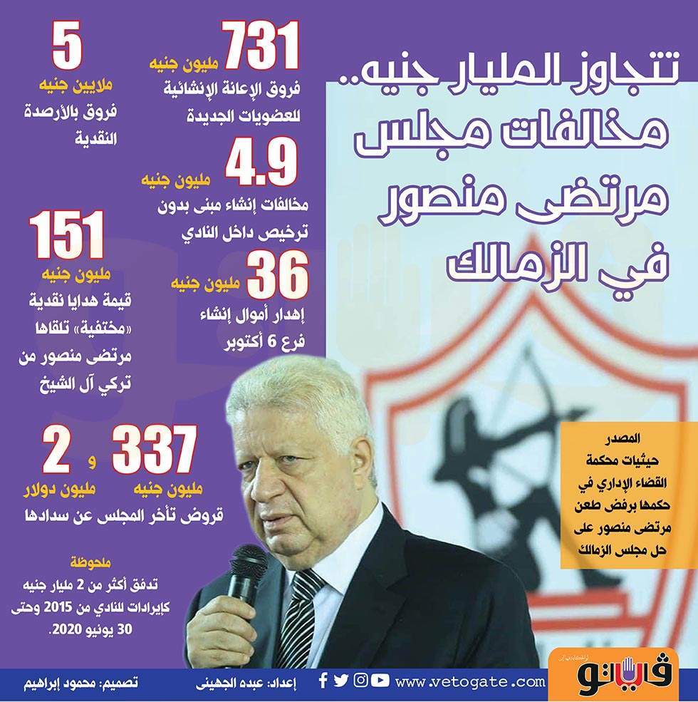 تتجاوز المليار جنيه.. مخالفات مجلس مرتضى منصور في الزمالك | إنفوجراف