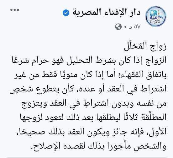وبدأت الأزمة مع نشر دار الإفتاء فتوى قالت فيها، إن الزواج إذا كان بشرط التحليل فهو حرام شرعًا باتفاق الفقهاء، أما إذا كان منويا فقط من غير اشتراط في العقد أو عنده، كأن يتطوع شخص من نفسه وبدون اشتراطٍ في العقد ويتزوج المطلَّقة 3 طلقات، ليطلقها بعد ذلك لتعود لزوجها الأول، فإنه جائز ويكون العقد بذلك صحيحًا، والشخص يكون مأجور بذلك لقصده الإصلاح.