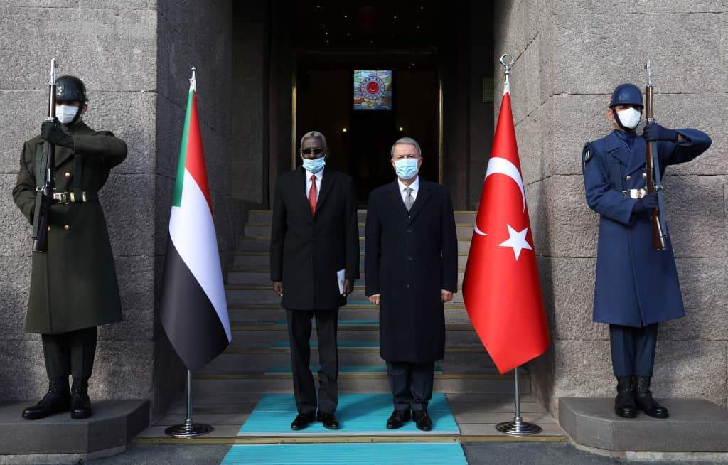 وبحسب وسائل إعلام سودانية قالت في خبر مقتضب، أن وزير الدفاع الفريق ياسين إبراهيم ياسين، يبحث مع وزير الدفاع التركي خلوصي أكار، العلاقات الثنائية والإقليمية والتعاون في مجالي الصناعات الدفاعية والدفاع، وذلك في مقر وزارة الدفاع التركية بالعاصمة "أنقرة".