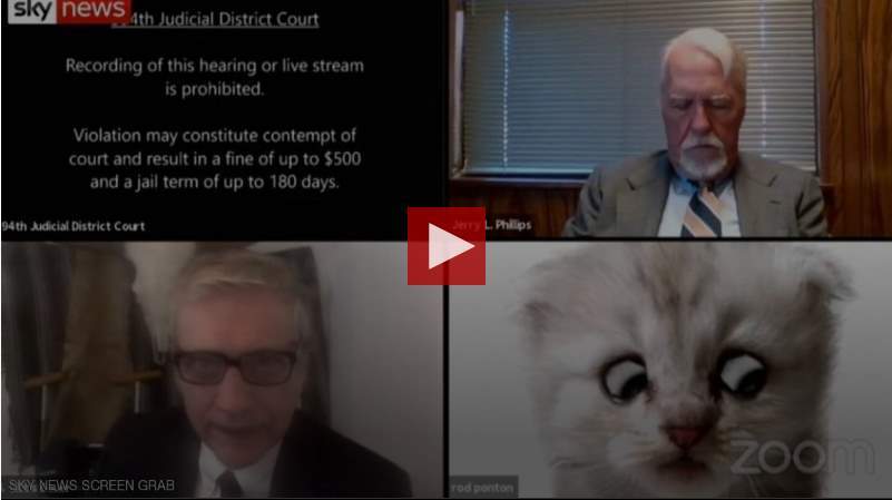 بدأ المحامي رود بونتون جلسة الاستماع الافتراضية أمام القاضي روي فيرجسون دون أدنى فكرة عن أن شخصيته التي تظهر على الشاشة كانت قطة صغيرة بيضاء وحولاء، وبعد أن نبه القاضي فيرجسون المحامي بونتون على مسألة القطة الكرتونية، قام بونتون بتجنيد مساعده في محاولة للمساعدة في إزالة الفلتر، ولكن من دون جدوى.