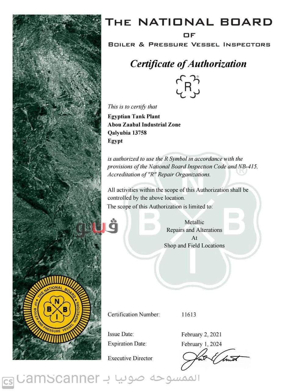 المدرعات" (200 الحربى) في الحصول على الاعتماد عن أكواد (u&r) من منظمة Asme ، وهي جمعية أمريكية متخصصة في مجال الهندسة