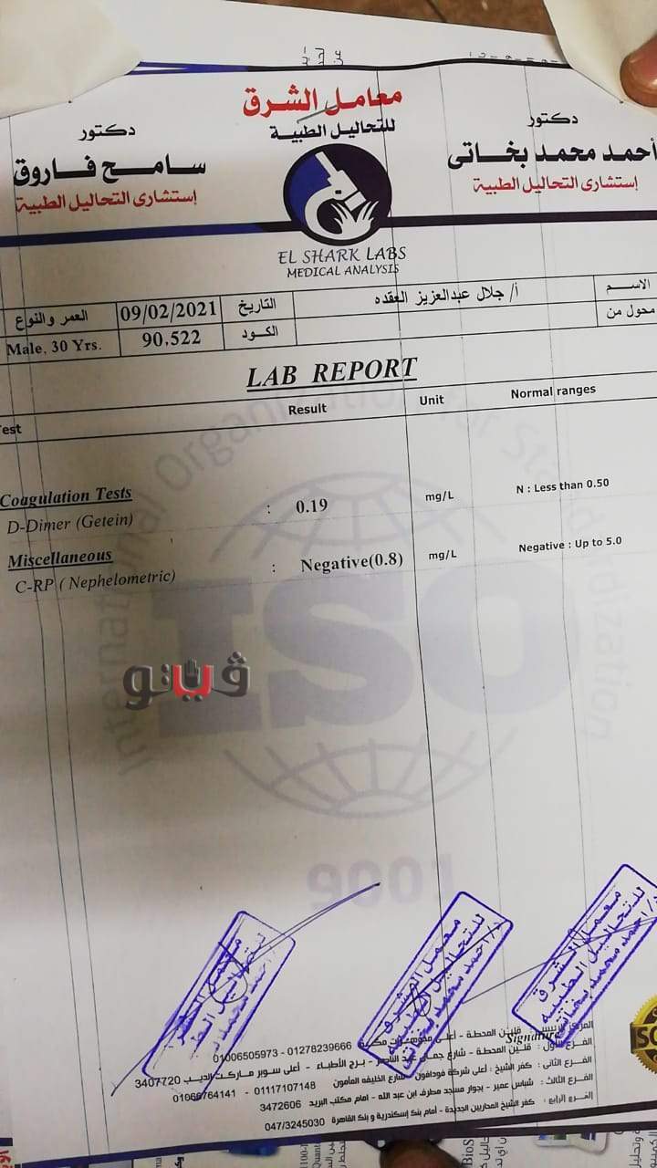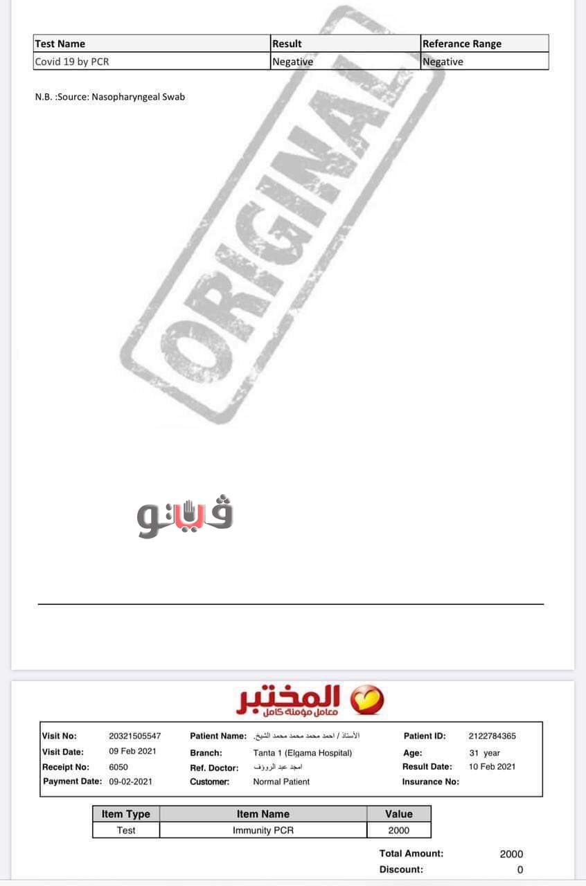 وذلك للتأكد من حقيقة إصابتهم بفيروس كورونا وذلك بعدما اثبتت المسحات التي أجراها
