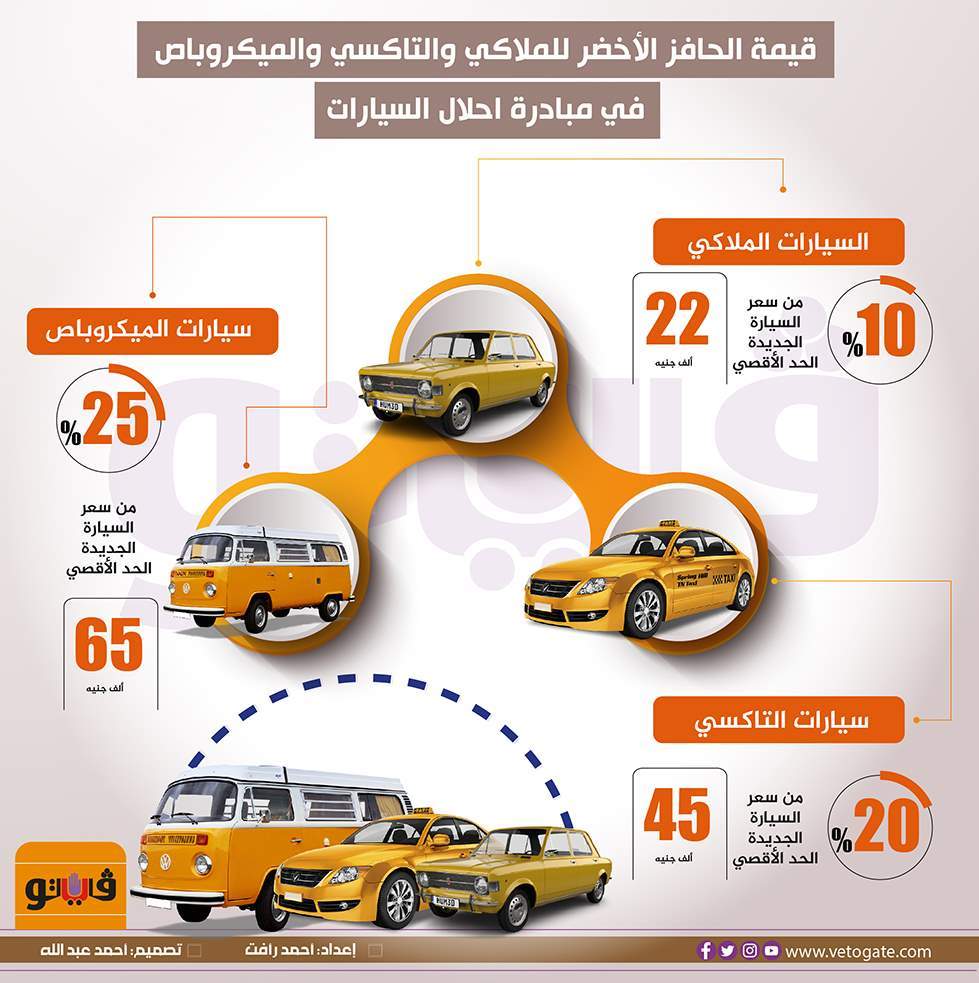قيمة الحافز الأخضر للملاكي والتاكسي والميكروباص في مبادرة احلال السيارات | إنفوجراف