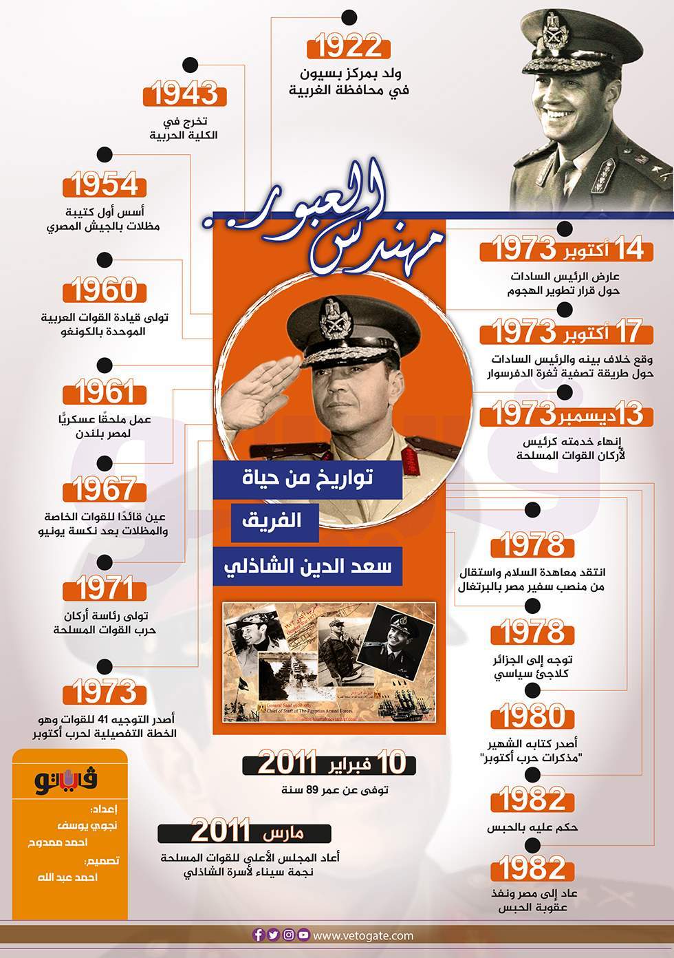 مهندس العبور.. تواريخ من حياة الفريق سعد الدين الشاذلي| إنفوجراف