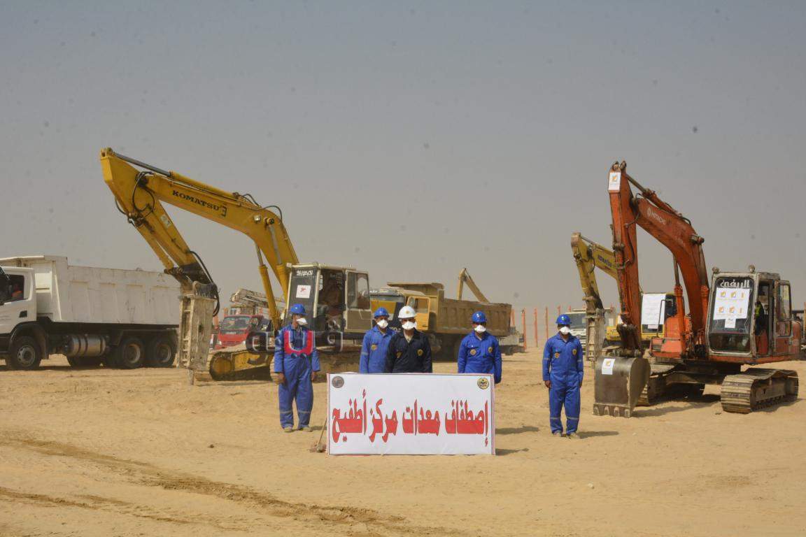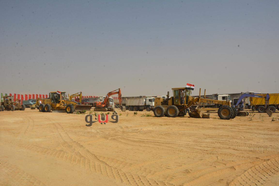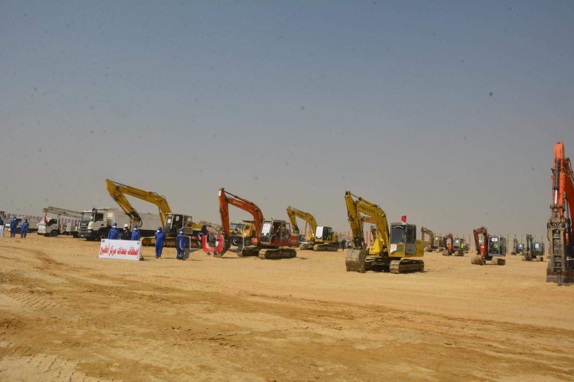 اصطفاف المعدات المشاركة لتطوير 42 قرية تابعة لمراكز الصف وأطفيح وذلك فى إطار المبادرة