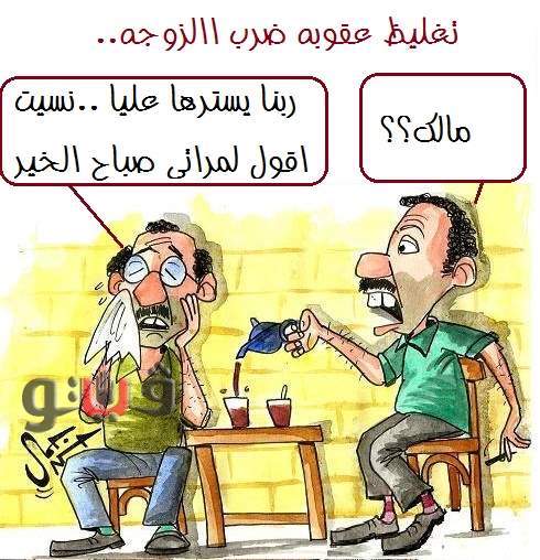 حال الأزواج بعد تغليظ عقوبة ضرب الزوجة في كاريكاتير فيتو الخميس 11/فبراير/2021 - 07:49 ص 2/11/2021 7:49:37 AM حال الأزواج بعد تغليظ عقوبة ضرب الزوجة في كاريكاتير فيتو حسن جمال الدين شارك طباعة 18 حجم الخط شارك طباعة ساخرون كاريكاتير فيتو صباح الخير ضرب الزوجة كاريكاتير الزوجة عقوبة عقوبة ضرب الزوجة تغليظ عقوبة
