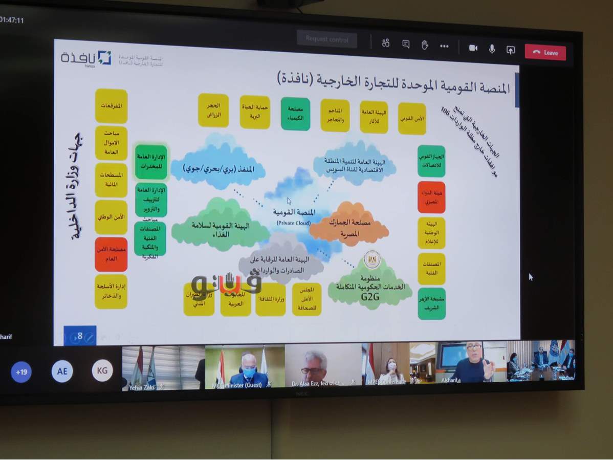 شارك فى الاجتماع عبر تقنية «الفيديوكونفرانس»، الفريق المهندس كامل الوزير وزير النقل، والدكتورة هالة السعيد وزيرة التخطيط والتنمية الاقتصادية، والدكتور إيهاب أبو عيش نائب وزير المالية لشئون الخزانة العامة، والدكتورة منى ناصر مساعد وزير المالية للمتابعة وإدارة مشروعات مصلحة الجمارك، وكمال نجم رئيس مصلحة الجمارك، والشحات غتورى رئيس الإدارة المركزية لشئون مكتب رئيس مصلحة الجمارك، واللواء إسماعيل جابر رئيس الهيئة العامة للرقابة على الصادرات والواردات، والربان أسامة الشريف رئيس الشركة المصرية لتكنولوجيا التجارة الإلكترونية «MTS»، والدكتور علاء عز أمين عام اتحاد الغرف التجارية.