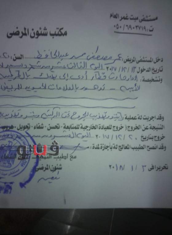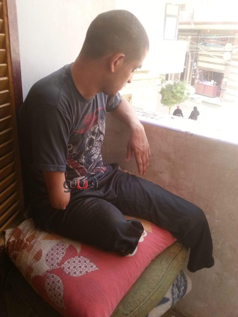 عمر مصطفى محمد عبد الحافظ 24 سنة شاب عشرينى مقيم بشارع الخزان بمدينة ميت غمر في محافظة الدقهلية ، يخيم على وجهه الحزن ويعاني من صدمة عصبية منذ أربع سنوات عقب تعرضه لحادث قطار نجم عنه بتر أطرافه .