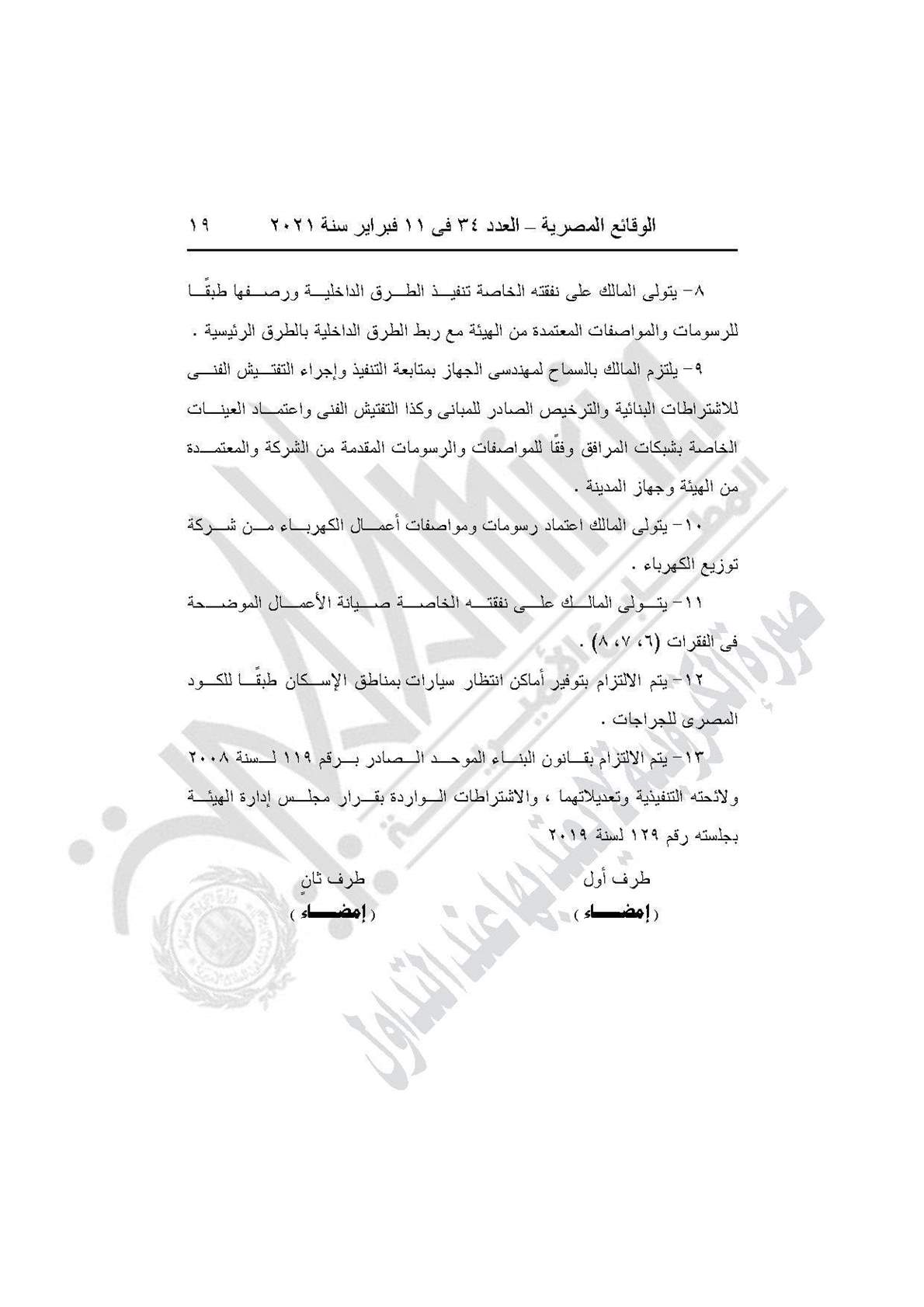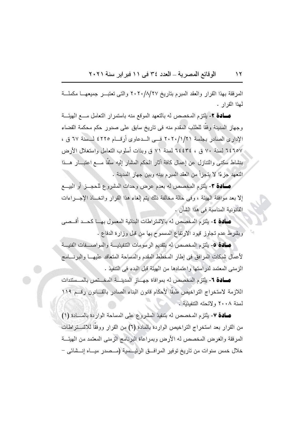 ويلتزم المخصص له بالتعهد الموقع منه باستمرار التعامل مع الهيئة وجهاز المدينة وفقًا للطلب المقدم منه في تاريخ سابق على صدور حكم محكمة القضاء الإداري، وبذات أسلوب التعامل واستغلال الأرض بنشاط سكني والتنازل عن إعمال كافة آثار الحكم المشار إليه سلفًا واعتبار هذا التعهد جزءًا لا يتجزأ من العقد المبرم بينه وبين الجهاز.