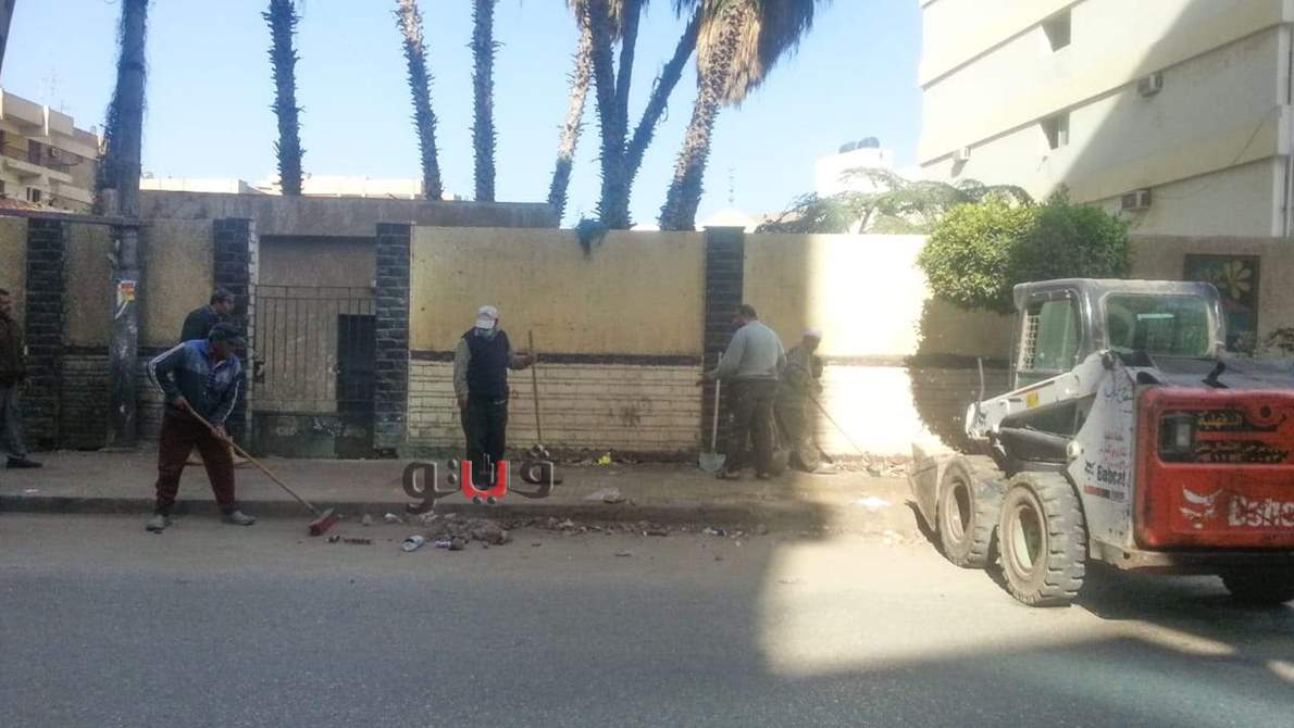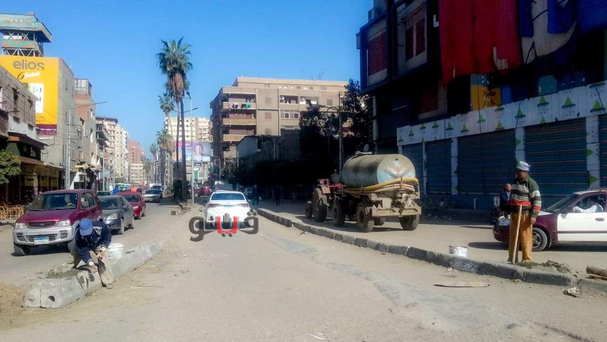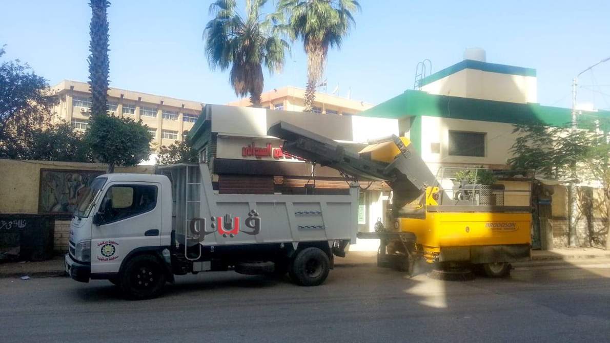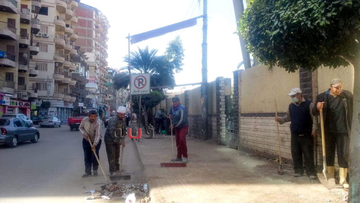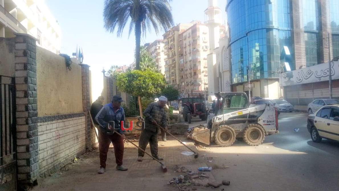 برفع كفاءة النظافة بمنطقة شارع جيهان ، ذلك من خلال تجريف وكنس رفع الاتربة من على جانبى الطريق بطول الشارع.