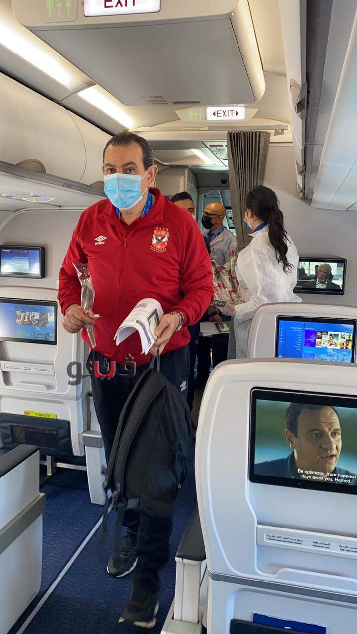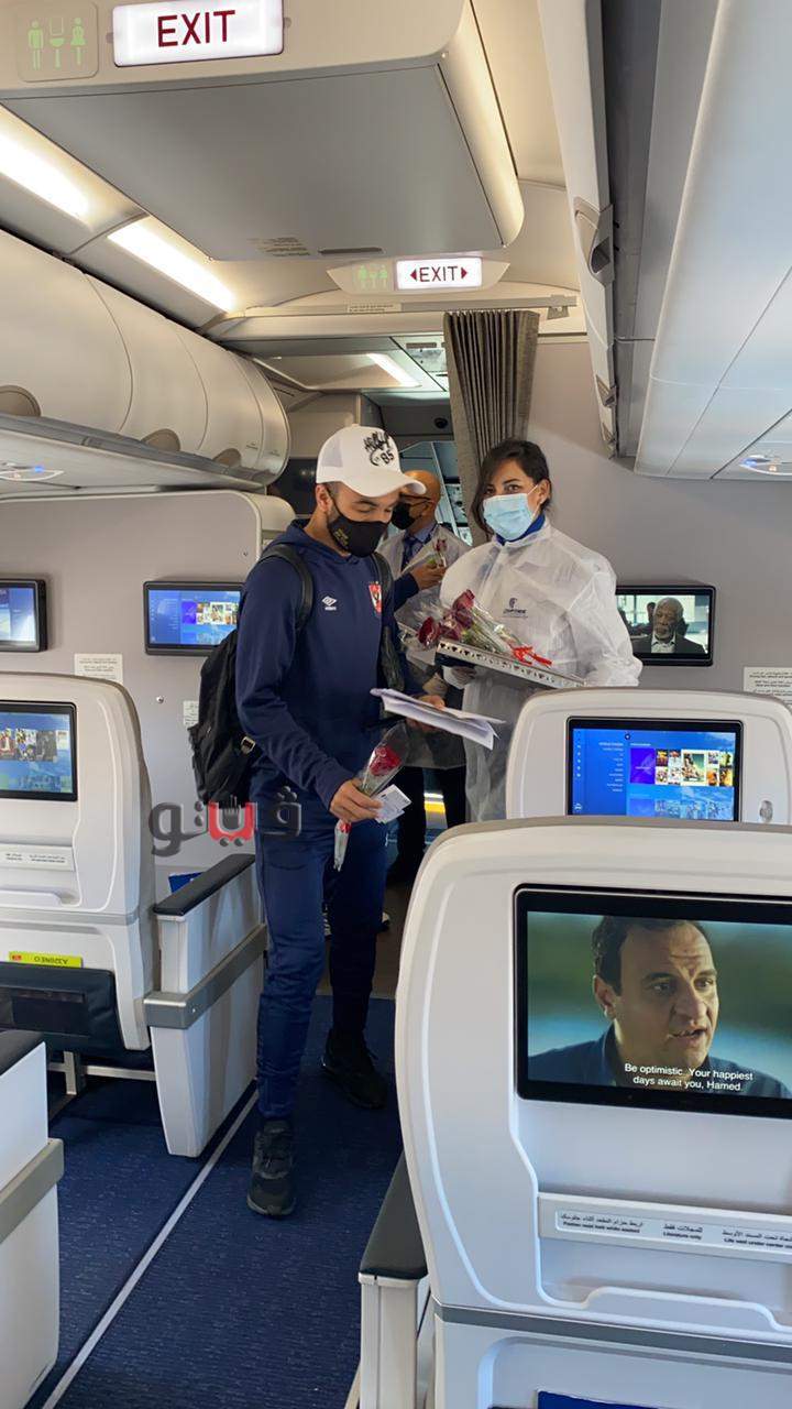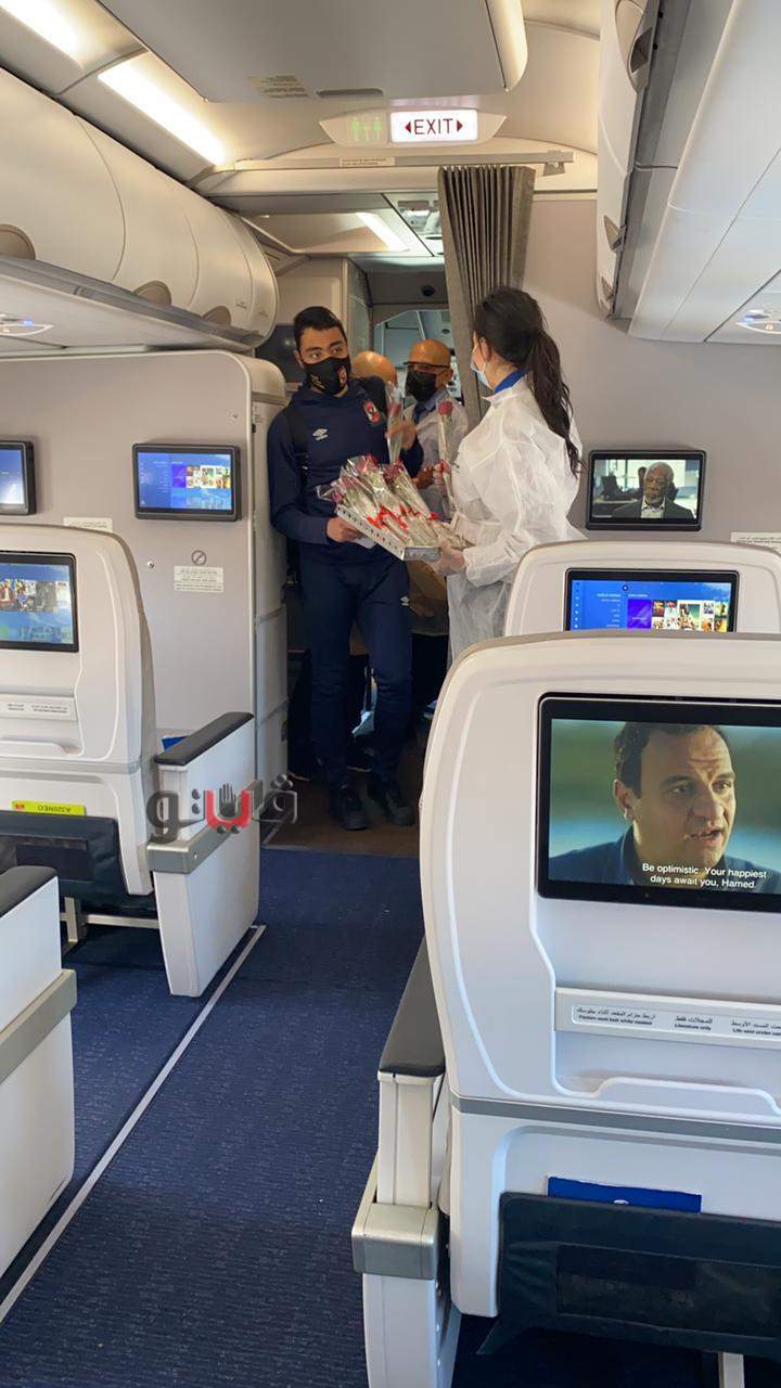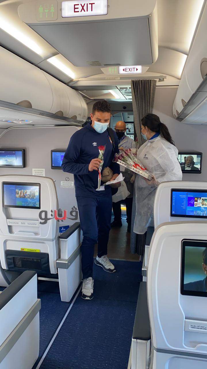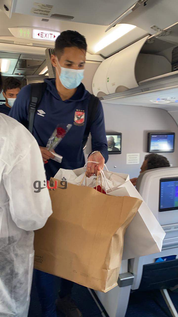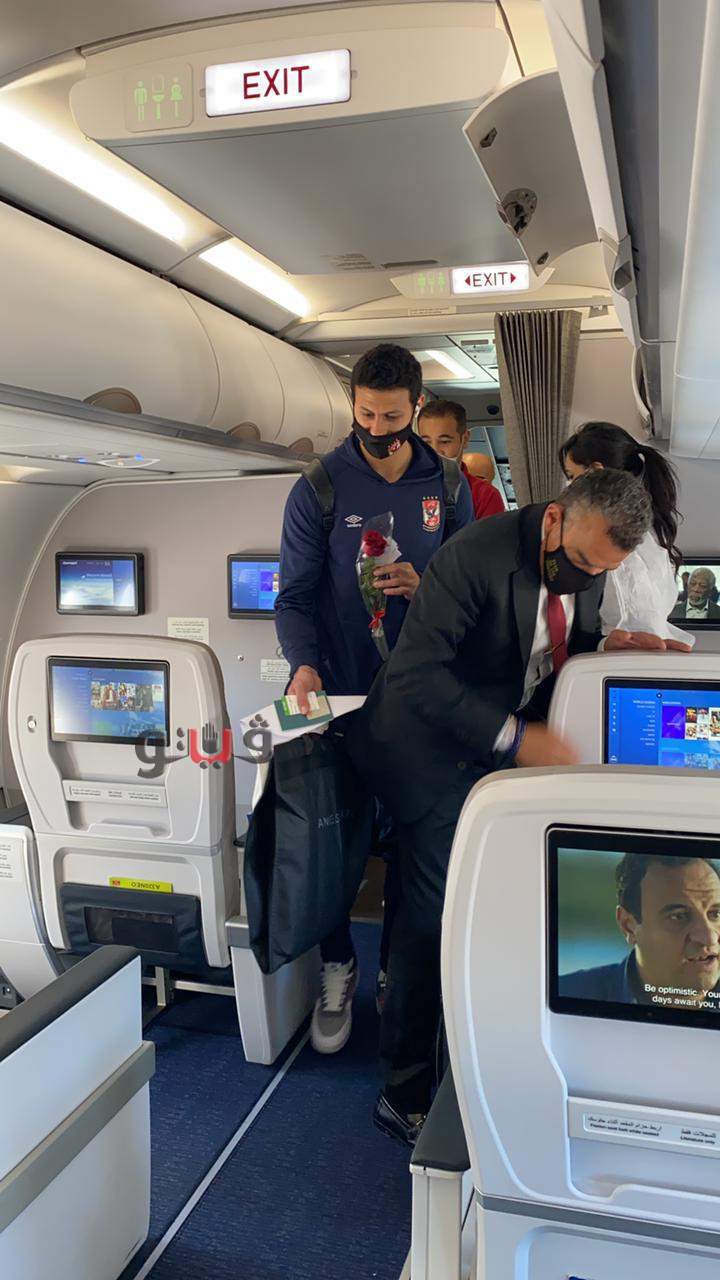 وحرصت مصر للطيران علي استقبال أعضاء بعثة النادي الأهلي علي متن الطائرة بالورود والشيكولاته.