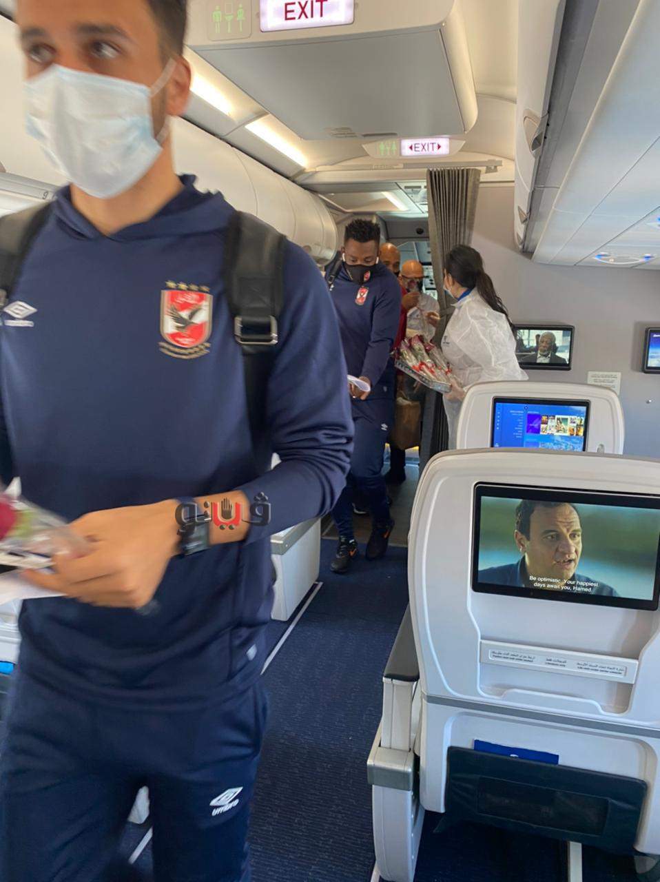وتحمل الطائرة شعار مصر للطيران والنادي الاهلي، كما قدم أفراد الركب الطائر للرحلة التهنئة للفريق عبر النداء الصوتي للطائرة على هذا الإنجاز الرياضي الجديد .