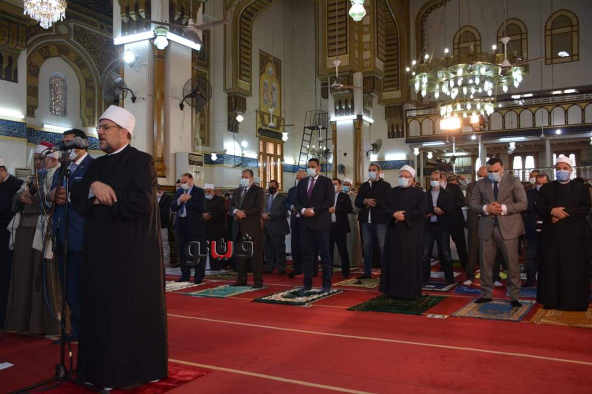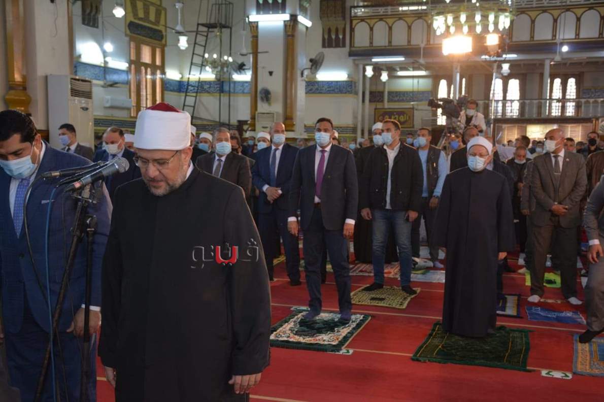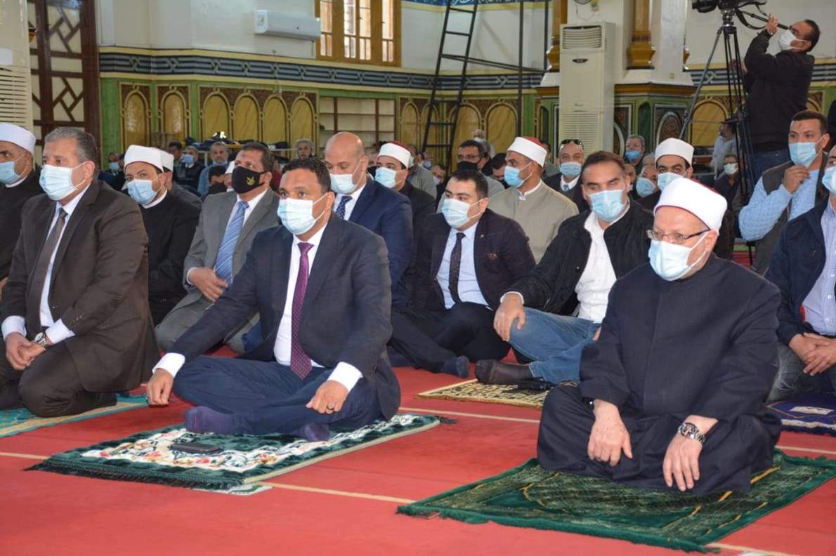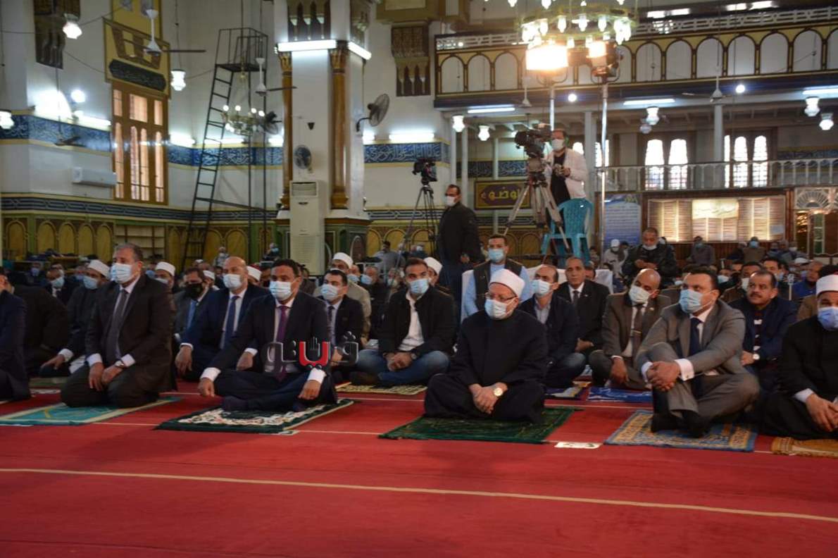 وادي محافظ الدقهلية ووزير الاوقاف ومفتي الجمهورية والقيادات الأمنية والتنفيذية ونواب البرلمان والشيوخ صلاة الجمعة بمسجد النصر بالمنصورة.