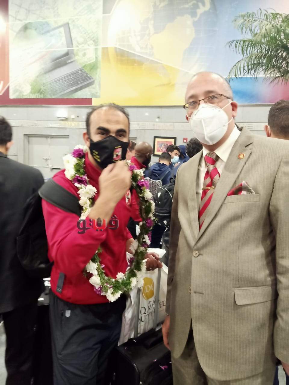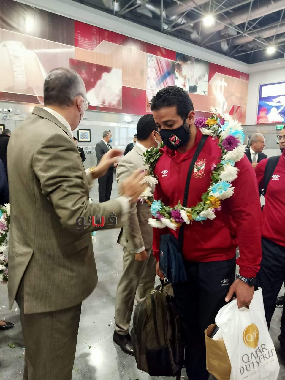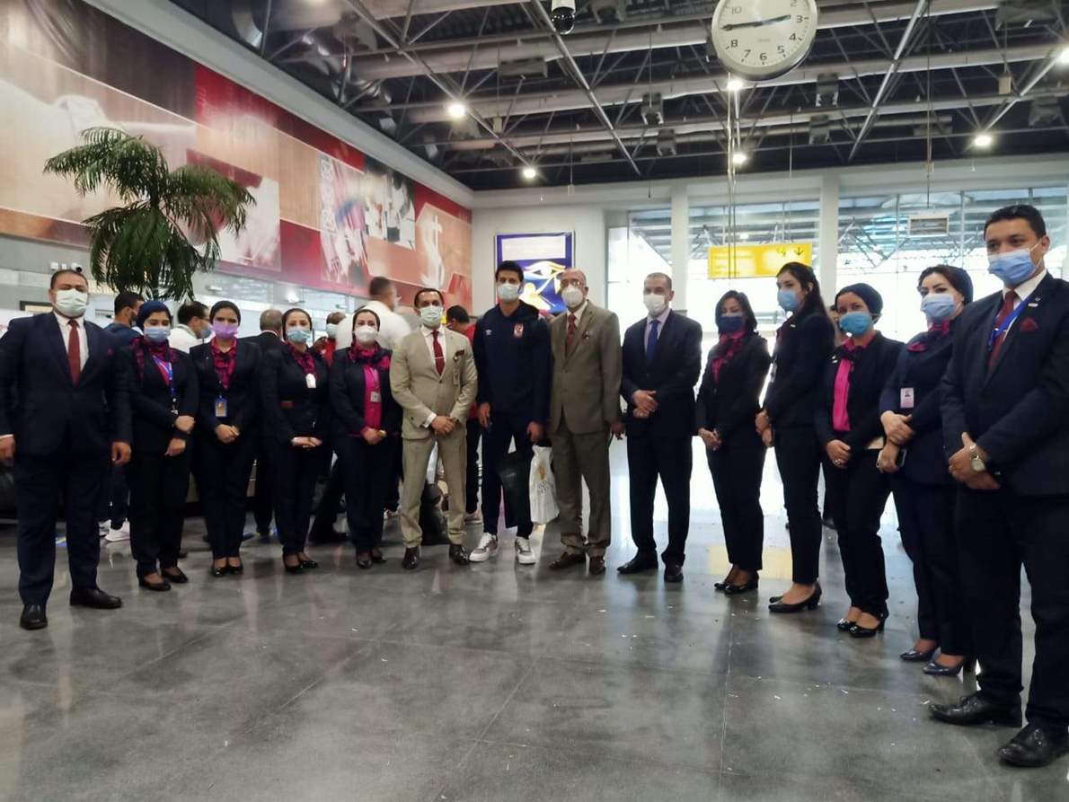 وكان في استقبال اللاعبين فريق من العلاقات العامة بالمطار تحت إشراف الدكتور طارق إسماعيل، بحضور اللواء أشرف حافظ مدير مبنى الركاب 1 المعروف بالمطار القديم .