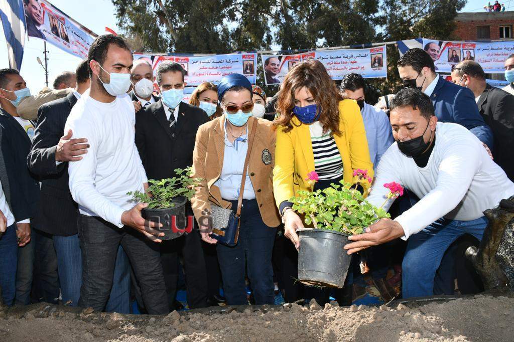 غرس كل من السفيرة نبيلة مكرم عبد الشهيد وزيرة الدولة للهجرة وشؤون المصريين بالخارج، والدكتورة ياسمين فؤاد وزيرة البيئة، والدكتور طارق رحمي محافظ الغربية، 3 شجرات إيذانا بإطلاق حملة اتحضر للأخضر "صفط تراب.. البداية".