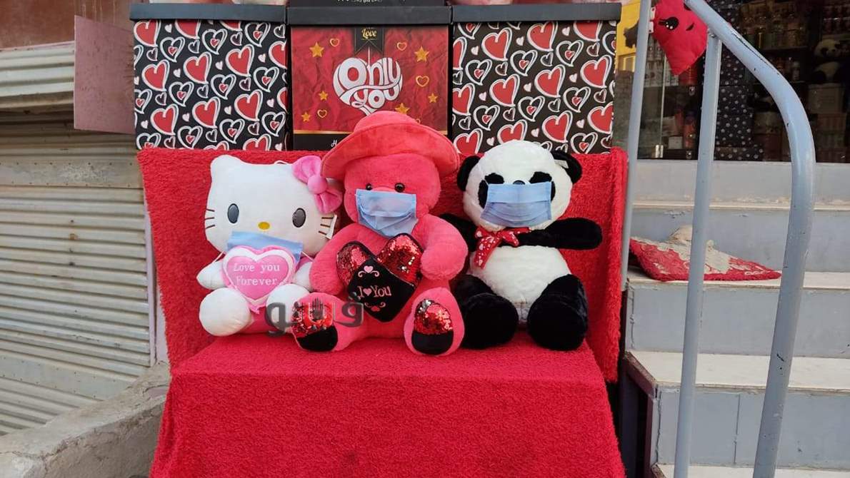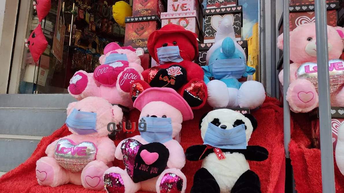 وأوضح أسامة عبد الموجود صاحب محل إكسسوارات وهدايا، أنه قام بوضع كمامات على "وجوه" الدباديب التي يستخدمها لعرض تشكيلاته من هدايا عيد الحب، بهدف توعية المواطنين، في زمن فيروس كورونا.