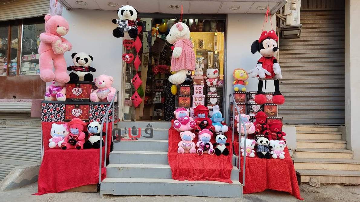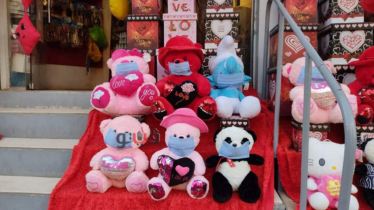 صاحب محل هدايا بالأقصر يضع كمامات على دباديب عيد الحب لتوعية المواطنين | صور