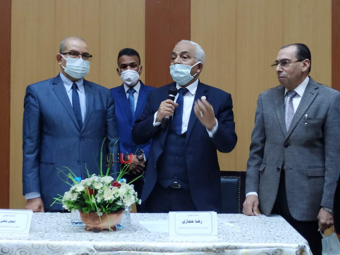 وتناول حجازي خلال كلمته للحضور مستحدثات الأمور على الساحة التعليمية، مشيرًا إلى التعليم عن بعد وظهور الحاجة إلى أساليب تعليمية جديدة تواكب الظروف الراهنة التى يشهدها العالم، منوهًا أن المرحلة القادمة تحتاج تطويرًا من المعلم لذاته وقدراته.