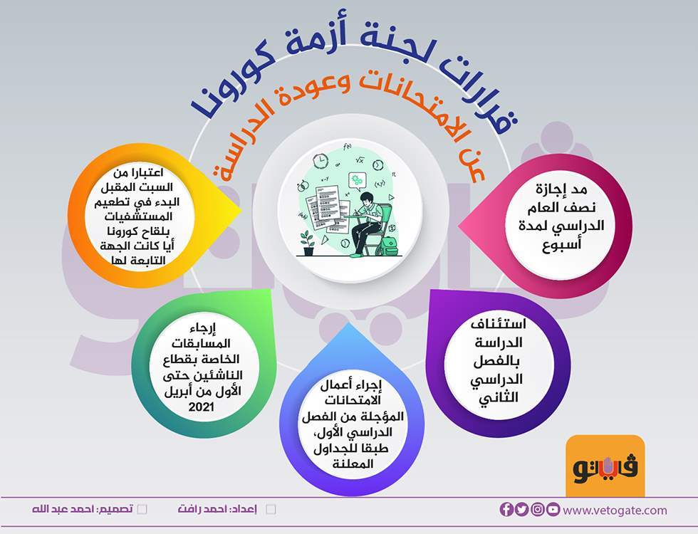 قرارات لجنة أزمة كورونا عن الامتحانات وعودة الدراسة | إنفوجراف