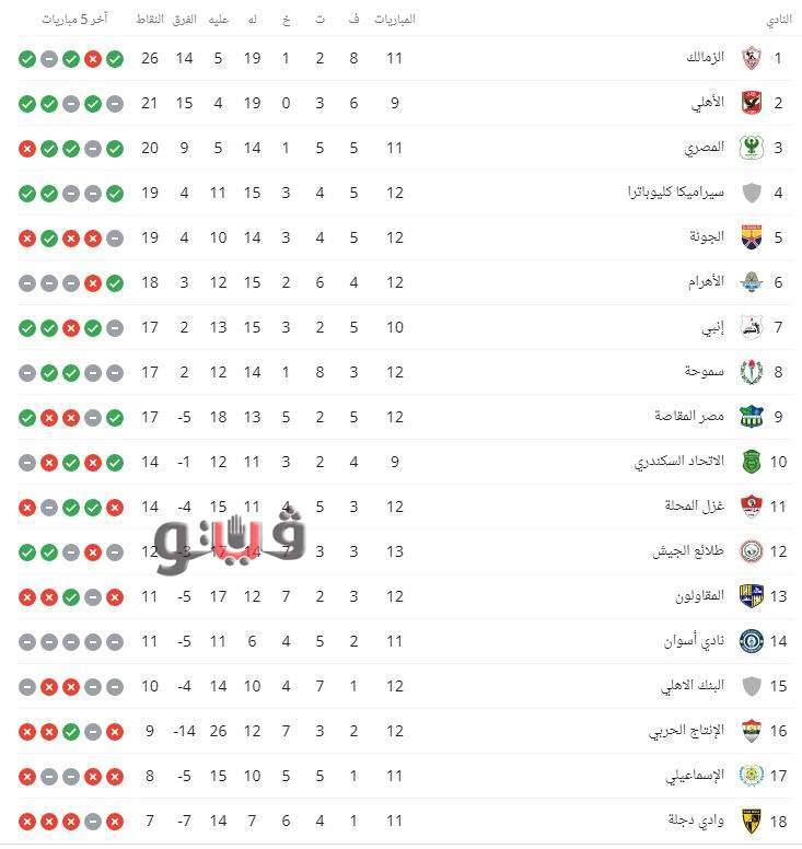 ويتصدر الزمالك حاليا جدول الدوري بـ 26 نقطة من 11 مباراة، فاز في 8 وتعادل في مباراتين وخسر مواجهة وحيدة.