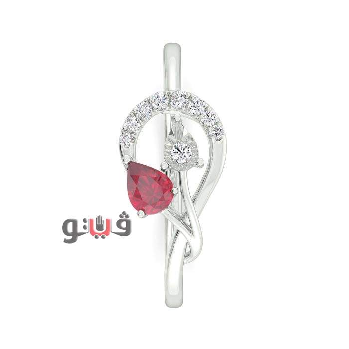 خاتم من الذهب الأبيض عيار 18 قيراطا والألماس والياقوت بسعر 4300 جنيه.