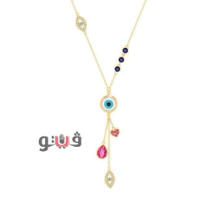 سلسلة العين الزرقاء والأحجار الملونة من الذهب الأصفر بسعر 5900 جنيه