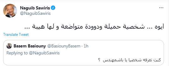 وعندما سأله أحد متابعيه "كنت تعرفه شخصيا يا باشمهندس؟"، رد ساويرس "ايوه... شخصية جميلة ودودة متواضعة ولها هيبة ...".