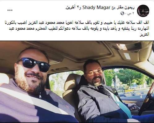 ونشر ريمون مقار صورة تجمعه بمحمد محمود عبد العزيز معلقا عليها قائلا: "الف الف سلامه عليك يا حبيبى و تقوم بالف سلامه اخويا محمد محمود عبد العزيز اصيب بالكورنا النهارده ربنا يشفيه و ياخد بايده و يقومه بالف سلامه دعواتكم للطيب المحترم محمد محمود عبد العزيز".