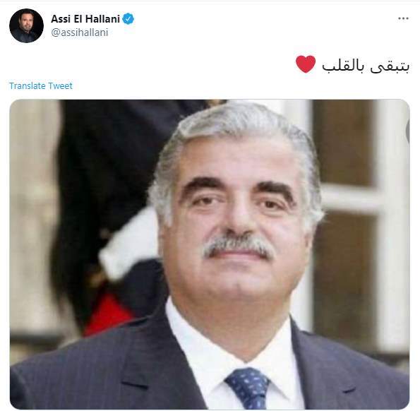 ونشر عاصي الحلاني صورة لرئيس الوزراء الأسبق معلقا عليها قائلا: "بتبقى بالقلب".