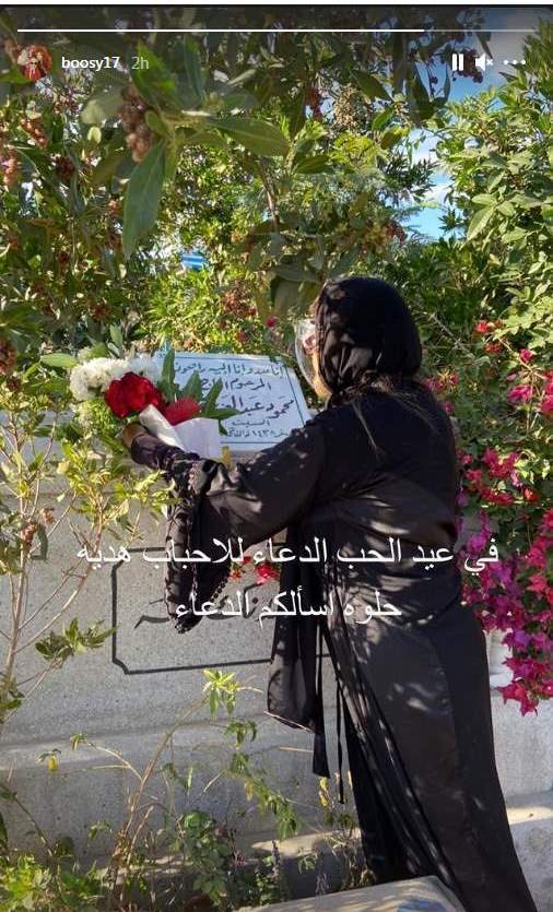 ونشرت بوسي شلبي عبر خاصية الإستوري صورة من زيارتها لقبر الفنان الراحل معلقة عليها قائلة: "في عيد الحب الدعاء للأحباب هدية حلوة.. أسألكم الدعاء".