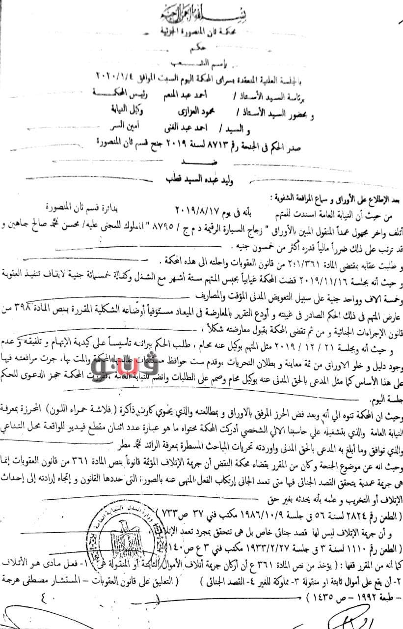 يذكر أن محكمة جنح المنصورة، برئاسة القاضي أحمد عبد المنعم، رئيس المحكمة رفضت المعارضة المقامة من المتهم وليد قطب في الحكم الصادر بحبسه في القضية رقم 8713 لسنة 2019 جنح قسم ثاني المنصورة.