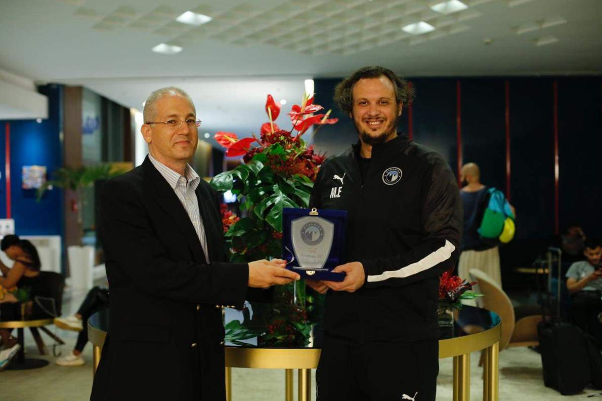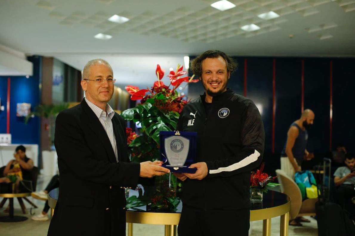 وقدم المدير التنفيذي لبيراميدز للسفير ومحمد الدرديري السكرتير الثاني لسفارة مصر في كوت ديفوار، درع نادي بيراميدز، موجهًا شكر وتقدير النادي العميق للسفارة وجميع العاملين بها على ما قدموه للبعثة.
